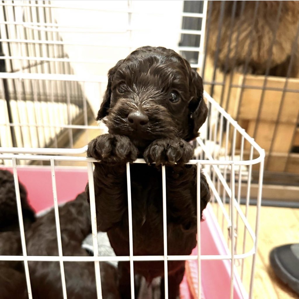 私たちは健康で優しいラブラドゥードルの子犬を育てています